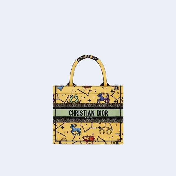 디올 픽셀 조디악 자수 북 토트 스몰 백 옐로우 > 북 토트백