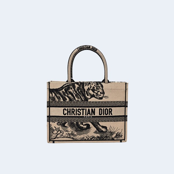 디올 타이거 캔버스 북 토트 백 브라운 > 북 토트백