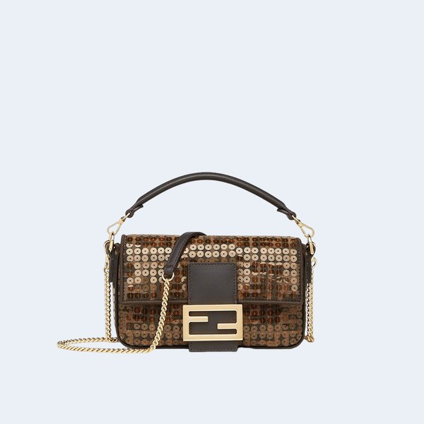 • 펜디 바게트 미니 FF 자카드 시퀸 패브릭 백
