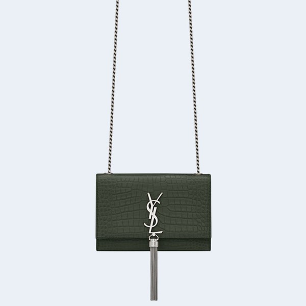 • 생로랑 크로커다일 케이트 스몰 태슬백 카키 실버