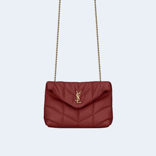 • 생로랑 PUFFER 레더 숄더백 레드 골드