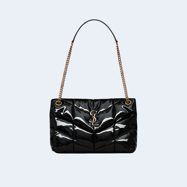 • 생로랑 모노그램 PUFFER 샤이니 레더 숄더백 블랙 골드