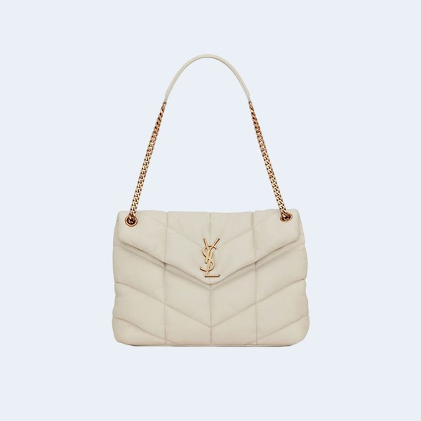 • 생로랑 PUFFER 레더 라지 숄더백 화이트 골드