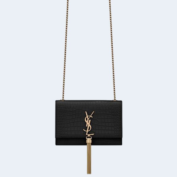 • 생로랑 크로커다일 케이트 스몰 태슬백 블랙 골드