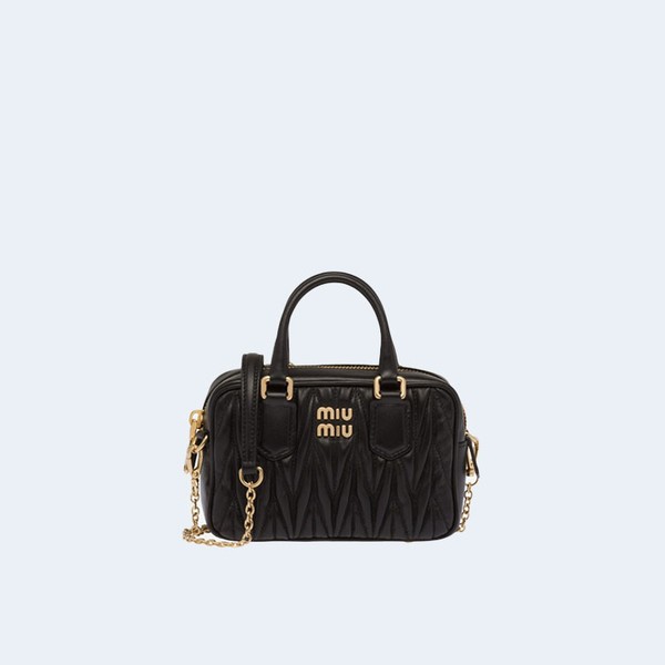 미우미우 마테라쎄 나파 가죽 탑 핸들 미니백 블랙 > 토트백