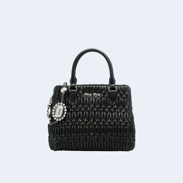 미우미우 크리스탈 클로케 나파 가죽 핸드백 블랙 > 토트백