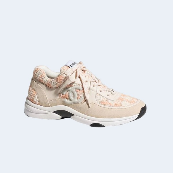 샤넬 CC 로고 트위드 스니커즈 오렌지 > 스니커즈