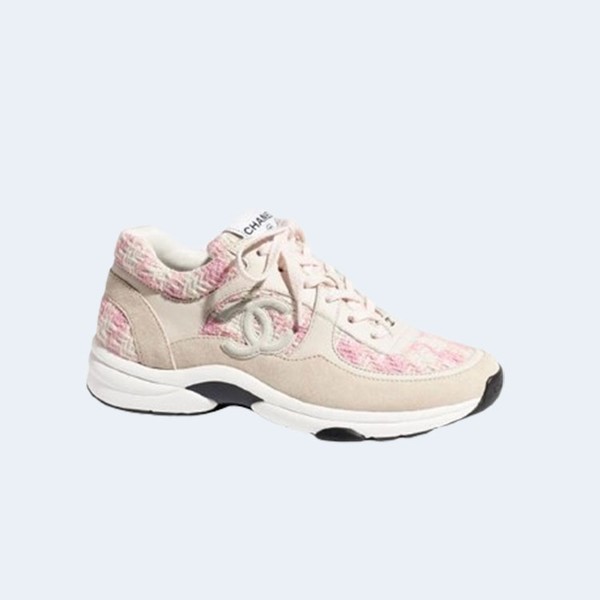 샤넬 CC 로고 트위드 스니커즈 핑크 > 스니커즈
