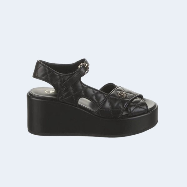 • 샤넬 인터로킹 CC 로고 슬링백 샌들