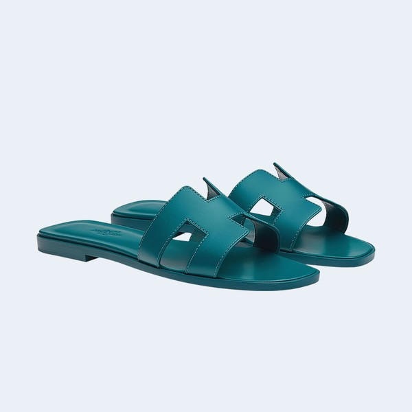 에르메스 오란 샌들 카프스킨 & 블루 에메랄드 > 샌들 / 뮬