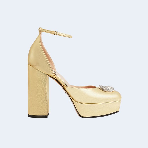 구찌 더블 G 플랫폼 펌프 골드 > 구찌
