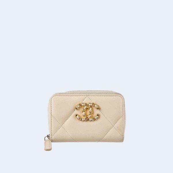• 샤넬 19 지퍼 코인 지갑 베이지