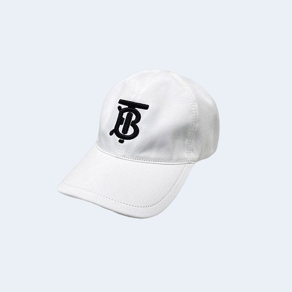 버버리 TB 자수 로고 화이트 코튼 베이스볼 캡 > 모자 / 비니