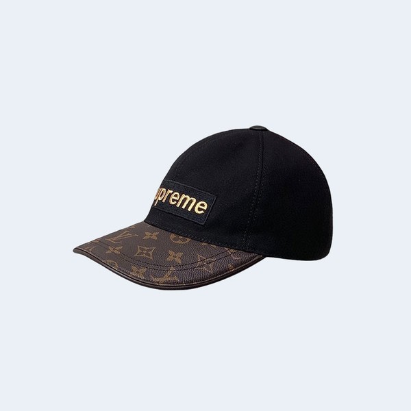 루이비통 x 슈프림 블랙 로고 베이스볼 캡 > 모자 / 비니