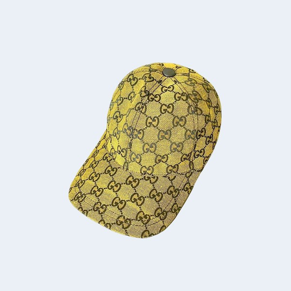 • 구찌 GG 모노그램 레더 로고 옐로우 베이스볼 캡