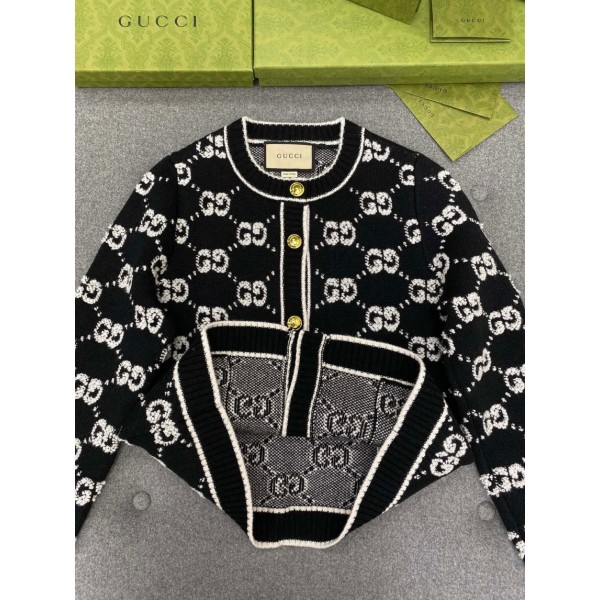 • 구찌 울 자카드 가디건