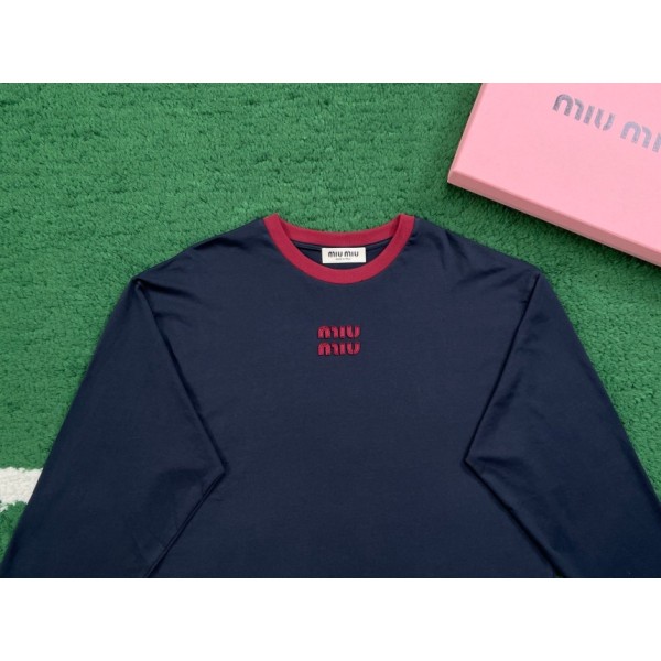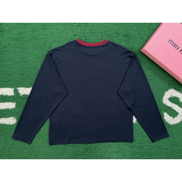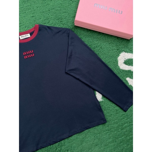 • 미우미우 롱슬리브 코튼 저지 티셔츠