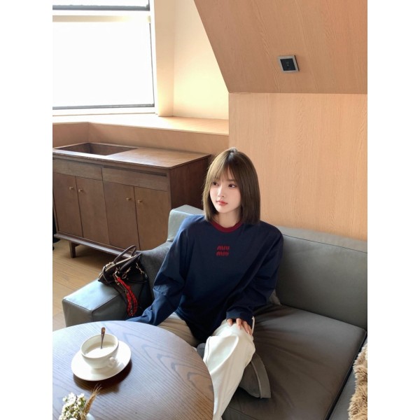 미우미우 롱슬리브 코튼 저지 티셔츠 > 롱슬리브