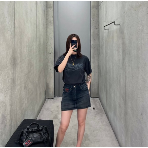 발렌시아가 워시드 크레용 폴리티컬 미디엄 핏 티셔츠 > 여성 의류