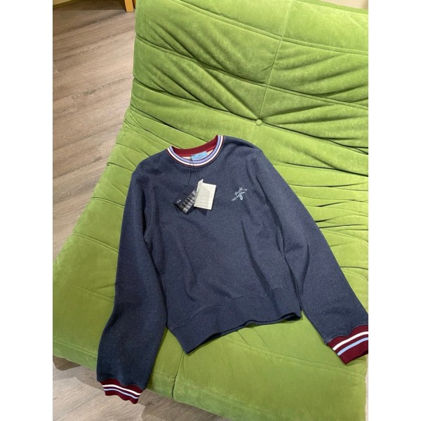 • 프라다 로고 자수 코튼 스웨트셔츠