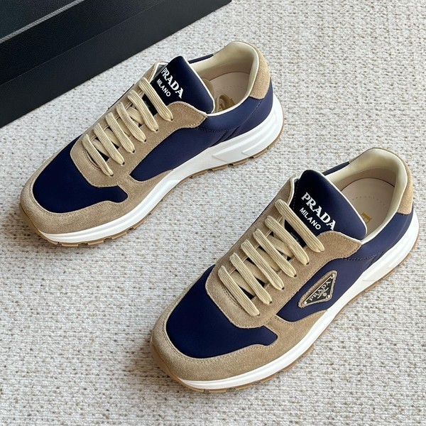 • 프라다 가죽 및 나일론 하이탑 스니커즈 네이비