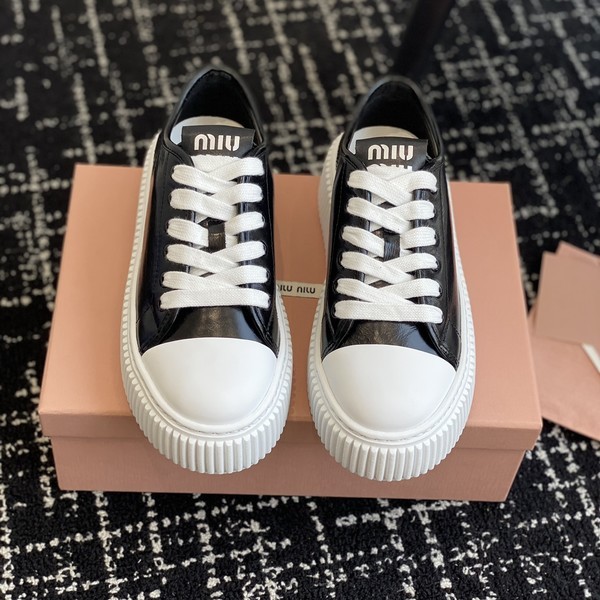 • 미우미우 레더 워시드 스니커즈 블랙