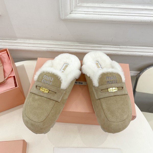 • 미우미우 스웨이드 시어링 뮬 베이지