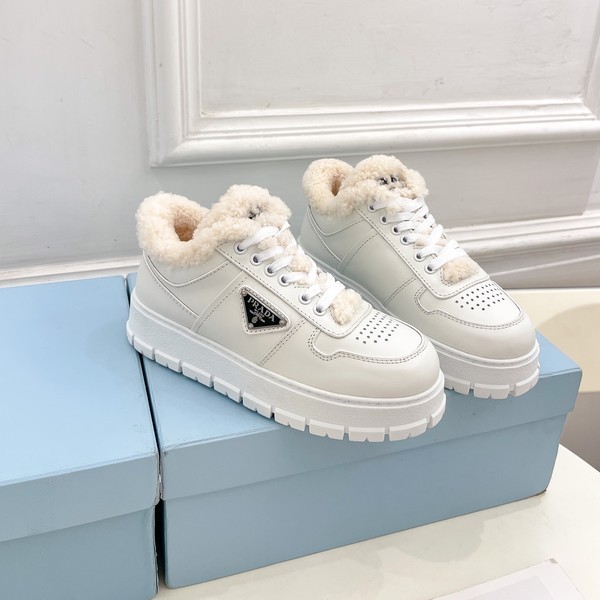 프라다 레더 시어링 다운타운 화이트 > 스니커즈