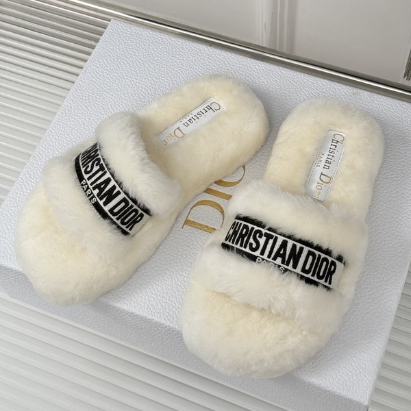 • 디올 시어링 로고 퍼 뮬 슬리퍼