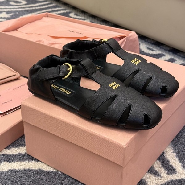 • 미우미우 루슈 나파 가죽 피셔맨 샌들