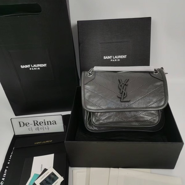 • 생로랑 PUFFER 레더 숄더백 화이트 실버