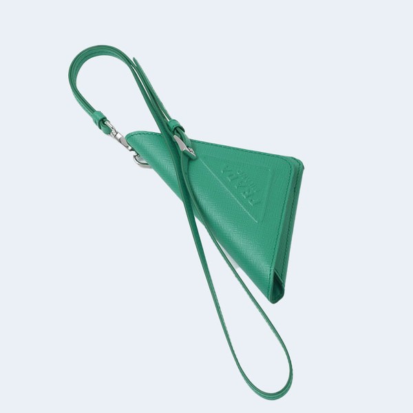 프라다 트라이앵글 사피아노 레더 키체인 트릭 그린 > 클러치