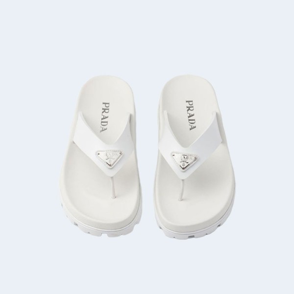 프라다 러버 끈 샌들 화이트 > 슬리퍼 / 뮬