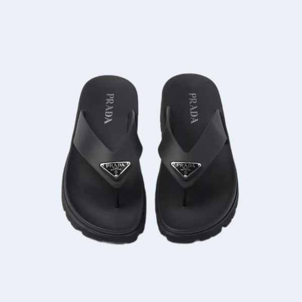 프라다 러버 끈 샌들 블랙 > 슬리퍼 / 뮬