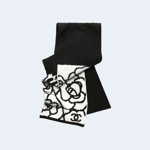 • 샤넬 캐시미어 울 블랙 화이트 스카프
