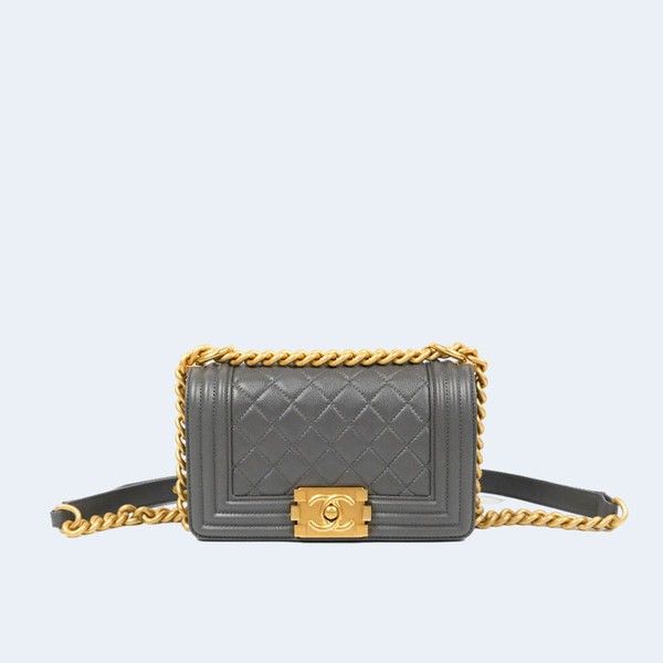 샤넬 보이백 미니 캐비어 그레이 골드 > 보이 백