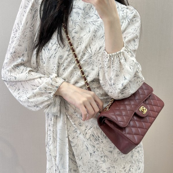 샤넬 클래식 캐비어 버건디 골드 > 클래식
