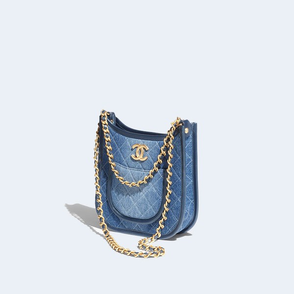 샤넬 호보 핸드백 블루 & 골드메탈 > 호보 백