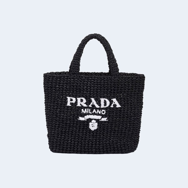 • 프라다 로고 자수 라피아 토트백 블랙