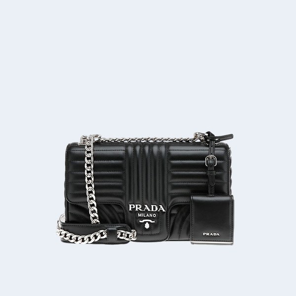 • 프라다 블랙 다이어그램 은장로고 체인 숄더백