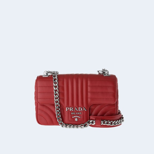 프라다 레드 다이어그램 플랩 체인 숄더백 > 숄더백