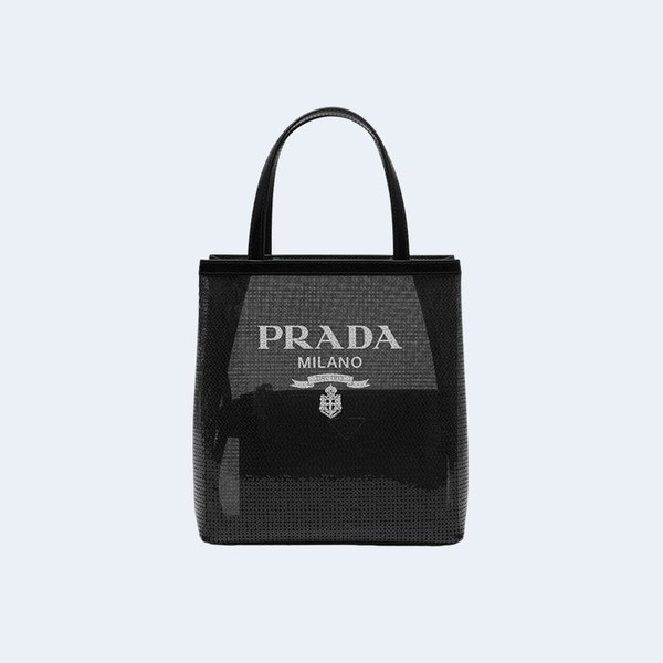 프라다 스몰 시퀸 메쉬 토트백 블랙 > 토트 백