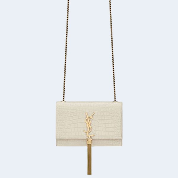 생로랑 크로커다일 케이트 스몰 태슬백 화이트 골드 > 생로랑