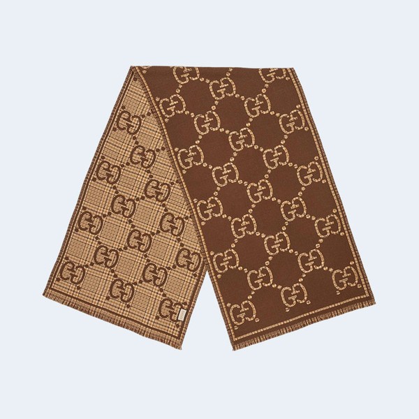 구찌 GG 체크 울 브라운 베이지 스카프 > 구찌