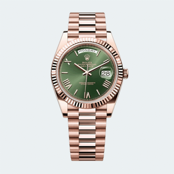 롤렉스 데이데이트 40mm 로즈골드 그린 로만 인덱스 > 롤렉스